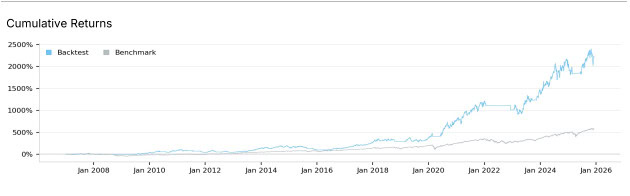 - Protects capital during crashes (beat SPY by 36% in 2008, 22% in COVID)