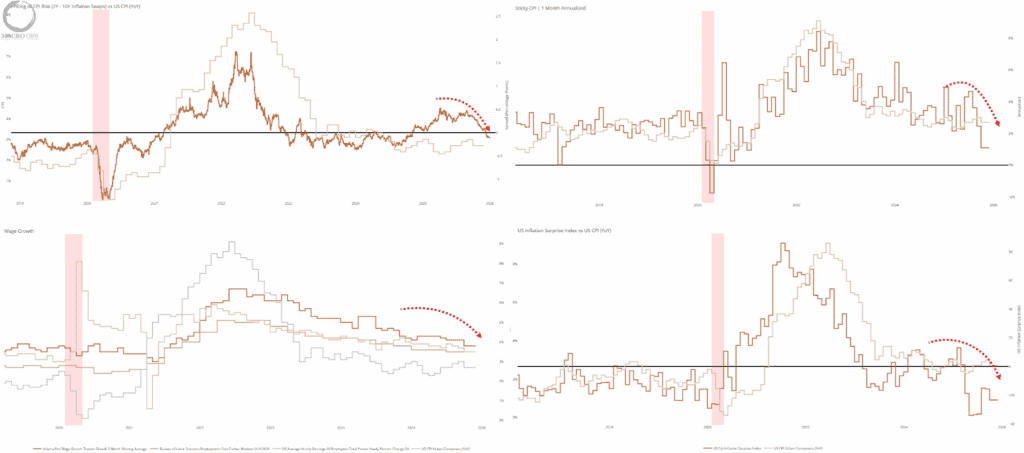 10. Will we see a disinflationary boom in 2026? It certainly looks probable… All our inflation leads continue to fall, with some outright collapsing, and all signs point to this continuing in the first half of 26. Accelerating AI adoption is lowering unit labor costs, allowing companies to protect margins without raising prices on consumers. Additionally, due to CPI’s 12m+ lag to shelter (core CPI’s most significant component), inflation must mechanically fall in the first half of this year.