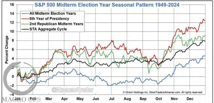 5. Stock Traders Almanac’s seasonality-informed base case for 2026: “70% Probability — Some volatility, most likely in Q3 of 2026. Late 2026 rally in Q4 ultimately pushes the market to a historical sixth year of presidential administrations gains for the year of around 8-12%. Inflation concerns linger but do not grow, the administration’s numerous policy changes deliver mixed yet positive results, new Fed chairman has a seamless transition, and the labor market remains reasonably stable while the AI-fueled spending and development “Super Boom” continues.”