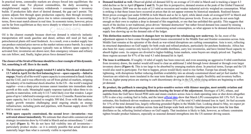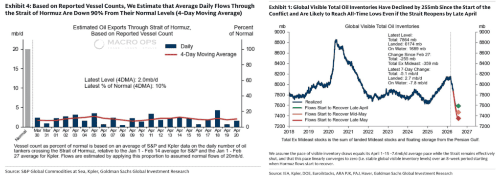 7. Via GS: The world’s oil buffers are being rapidly depleted — crude inventories poised to hit record lows even if the Strait of Hormuz fully reopens by month end.