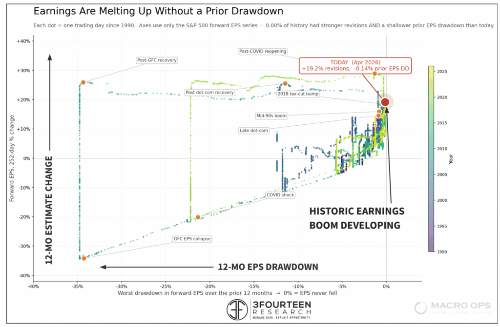 9. Via @WarrenPies: “A historic earnings boom is developing. Estimates growing faster than they did in the mid-90s or the late internet bubble years. Only the COVID recovery saw a greater inflection. And this boom is unique — it’s not coming off an EPS drawdown.”