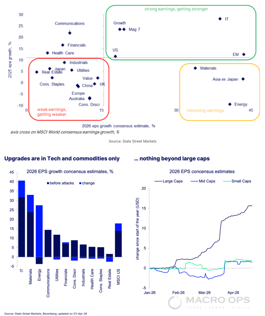 10. But like breadth, the strong earnings revisions are concentrated in tech and commodities. (Charts via State Street.)