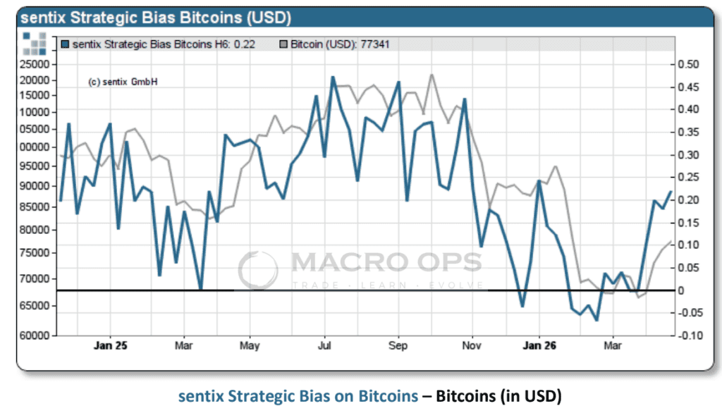 11. Sentix’s Strategic Bias continues to positively diverge from the underlying. Solid sign and high odds of a coming bull leg in bitcoin.