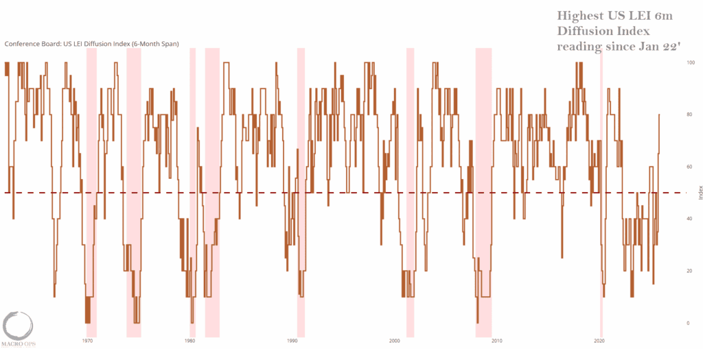 11. Our reflation hypothesis that we’ve held since last Summer continues to be validated. Here we have the Conference Board’s US LEI 6m diffusion index putting in its highest reading since Jan 22’.