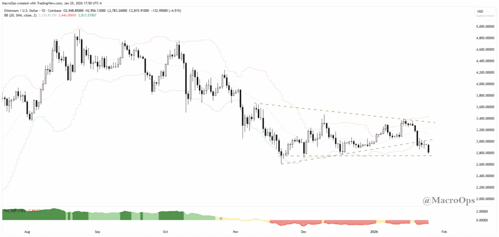 7. Crypto probably offers the best risk-off hedge here. ETH has broken below its wedge, while net spec positioning remains crowded long.