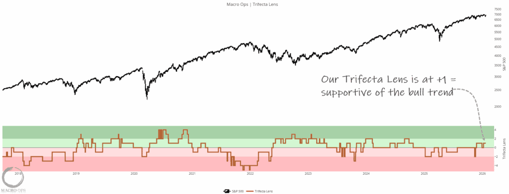 5. Trifecta Lens, our composite measure of technicals, breadth, internals, liquidity, sentiment, and macro, is at +1, which is supportive of the primary uptrend in risk assets.