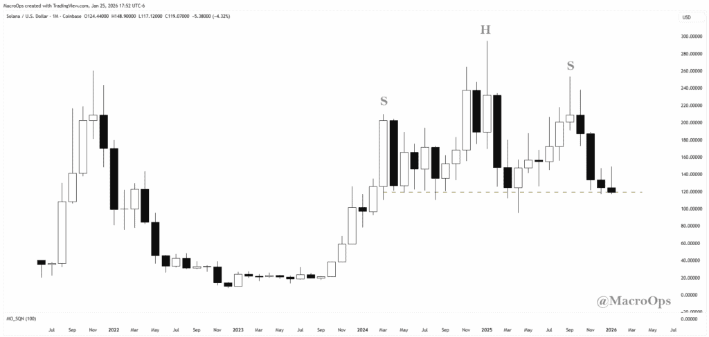 8. Is SOLUSD about to complete a massive 2-year H&S top? It looks likely… We’ll go short on a sustained move below 120.