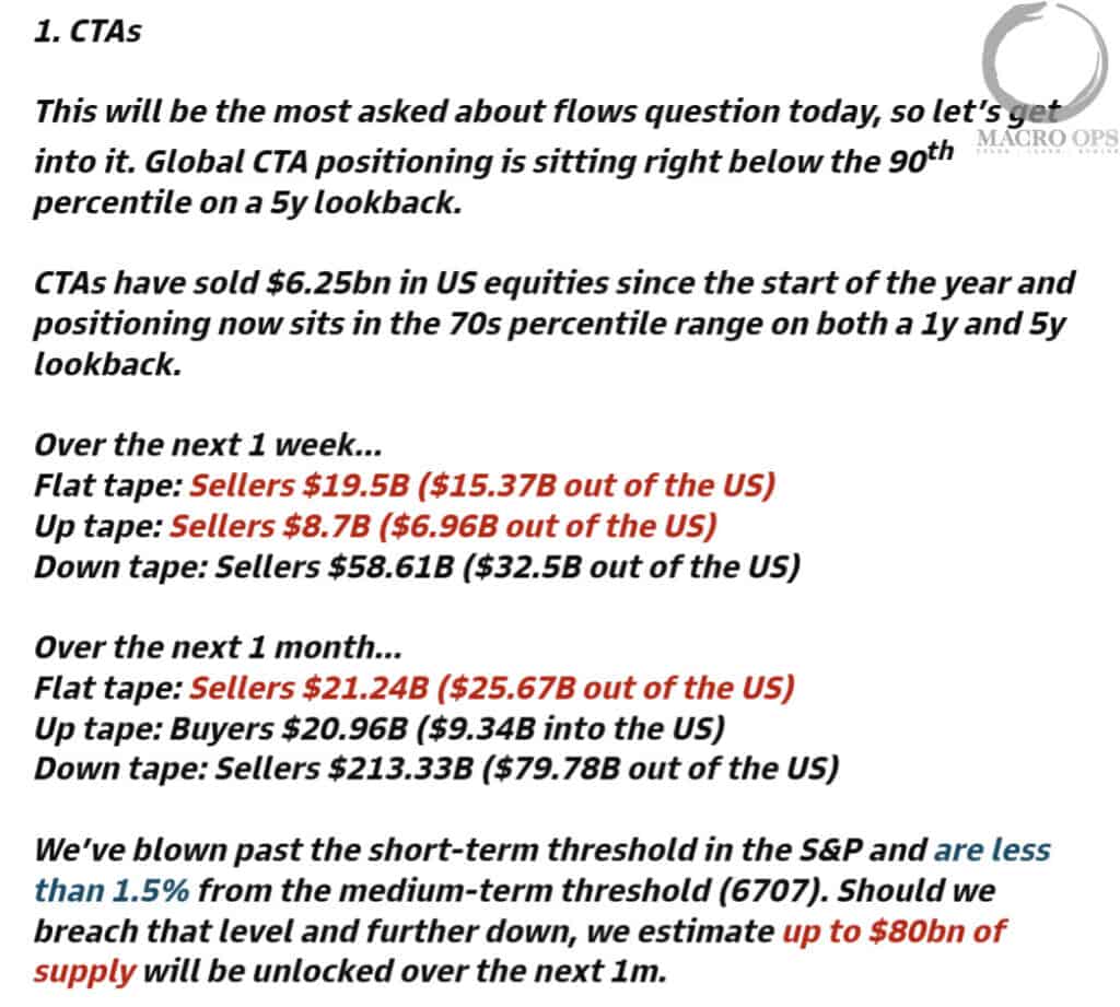 5. Global CTA positioning is in the 90th %tile according to GS. If the SPX takes out last week’s lows, we’ll have a substantial headwind from trend followers.