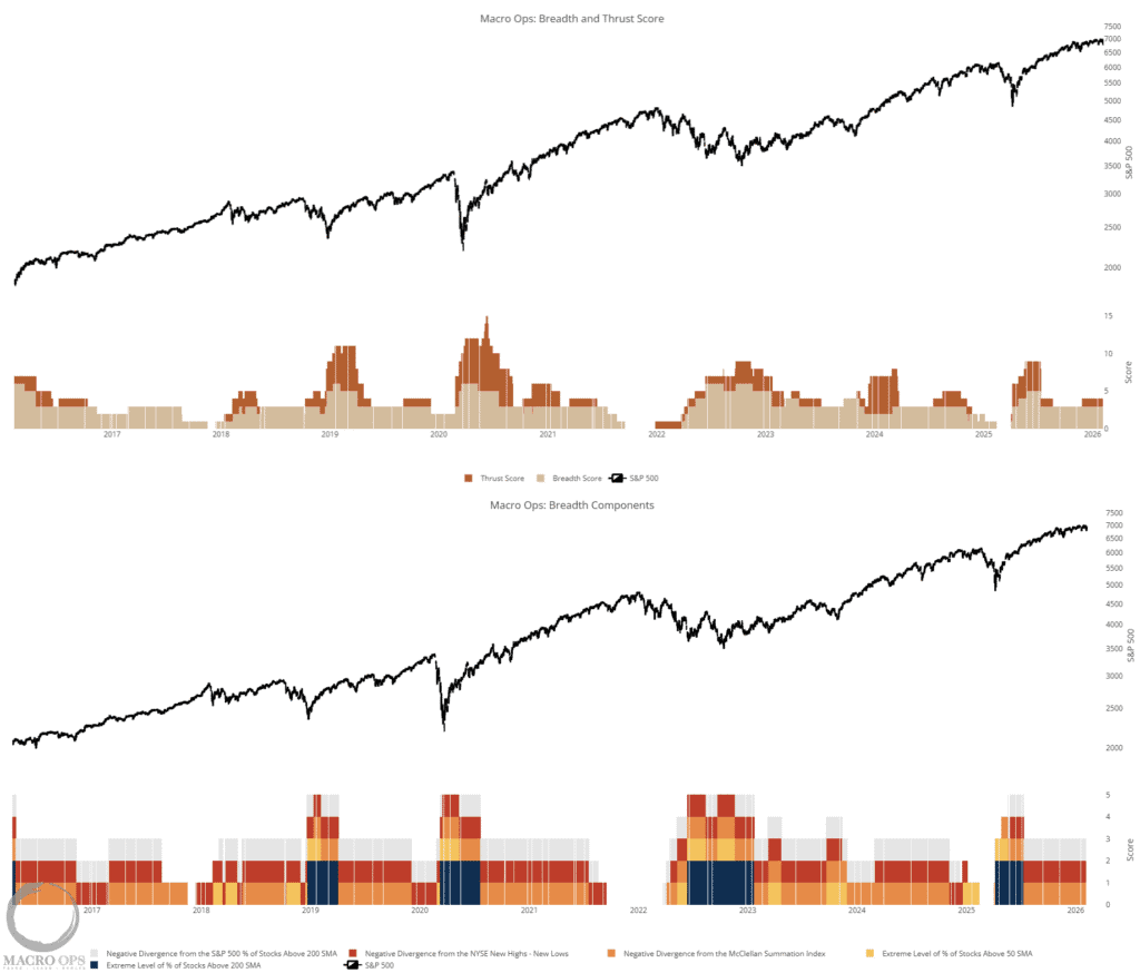 3. Our Aggregate Breadth and Breadth+Thrust composite, however, remains supportive of the broader uptrend. This suggests any near-term downside should be contained (sub -7%).
