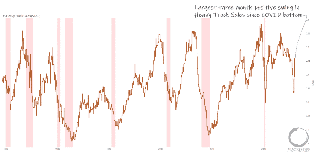 7. I’ve been highlighting the positive inflections in US growth metrics for the past month. Well, here’s another one… Heavy Truck Sales have put in their strongest 3-month swing since the COVID lows. And there are people out there seriously talking about a recession this year, smh.