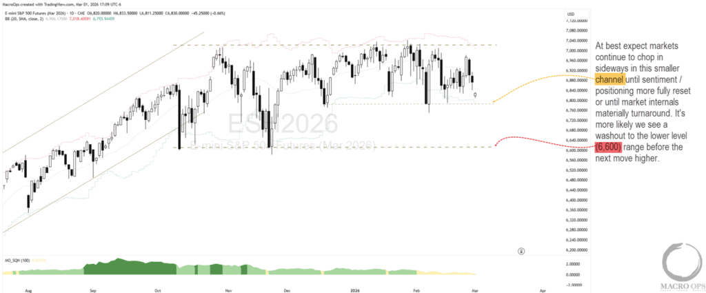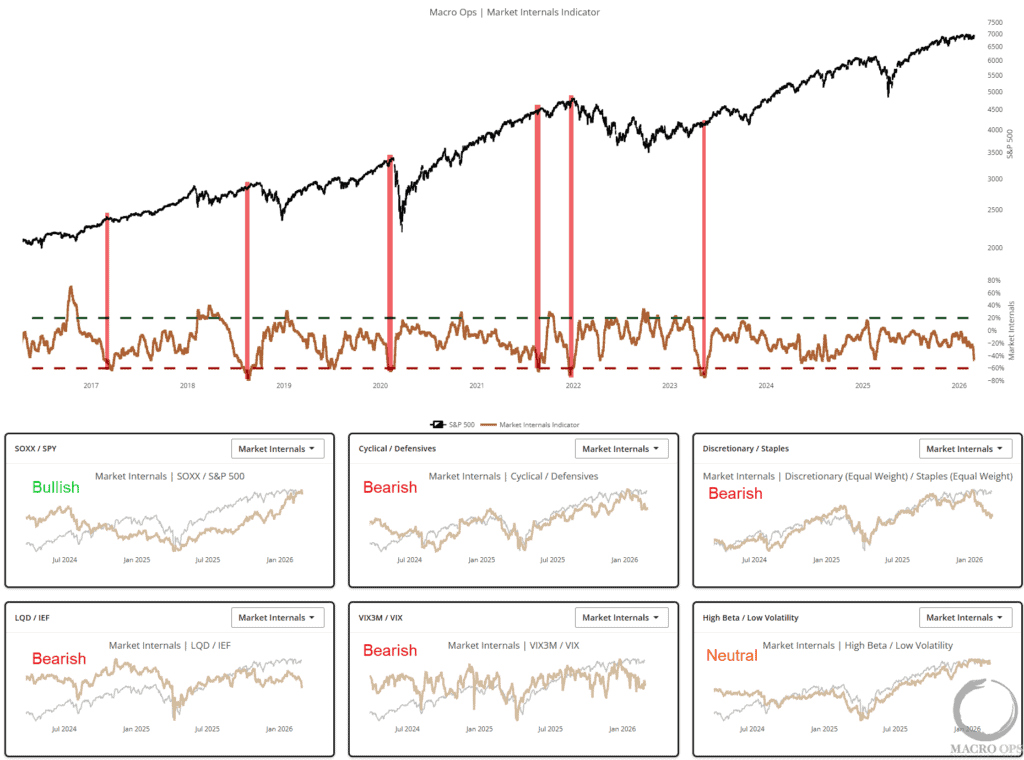 Summary: Sentiment and positioning are slowly resetting — but they still have a ways to go before we can call it a true reset. Market internals are deteriorating fast, which historically points to poor 1-month forward returns. Expect continued sideways chop and vol in the indices; SPX likely retests its November lows before all is said and done. That said, there’s plenty of action elsewhere. Our focus remains long oil, long the front end — and now potentially short the long end for some curve steepening. We close with a revisit of a biotech name that continues to show strength.