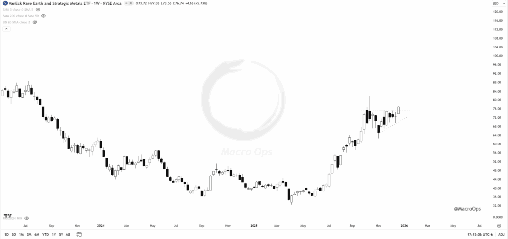12. We were early to the Rare Earth trade (REMX). And while we’ve traded in and out of the position, it looks like REMX is taking off on another leg after consolidating for the past three months. We’ll likely add to our long this week.