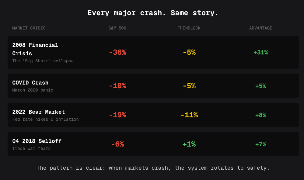 And when the next major pullback (or crash) in the market happens, you don’t have to take the full drawdown like you would if you just put your head in the sand and held S&P 500.