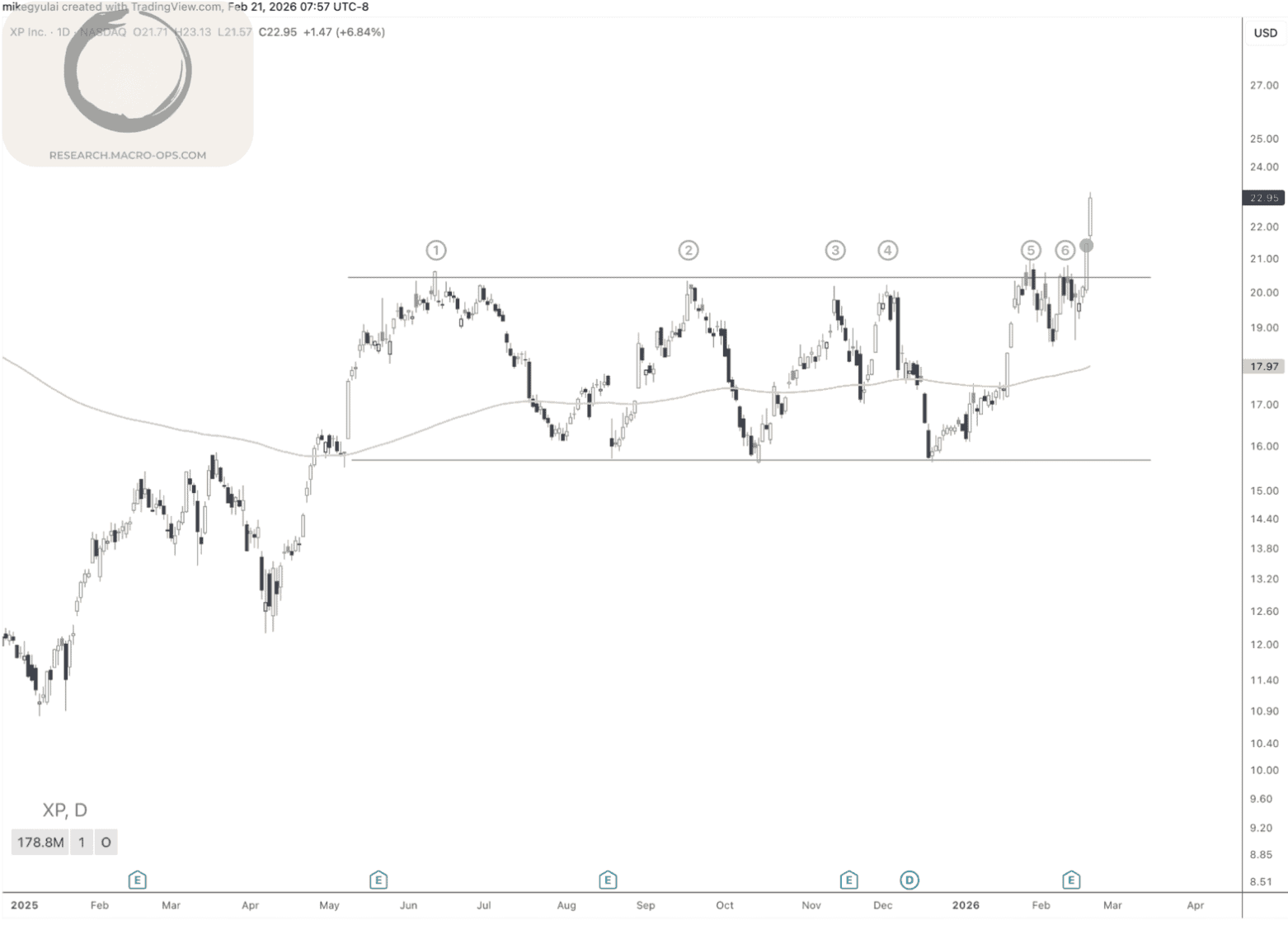Just last week, XP, Inc. (XP) broke out of a nine-month range with a wide-body bar, and followed through with equal strength on Friday:
